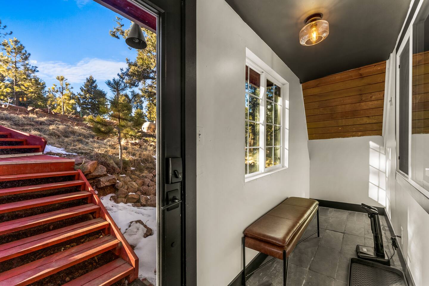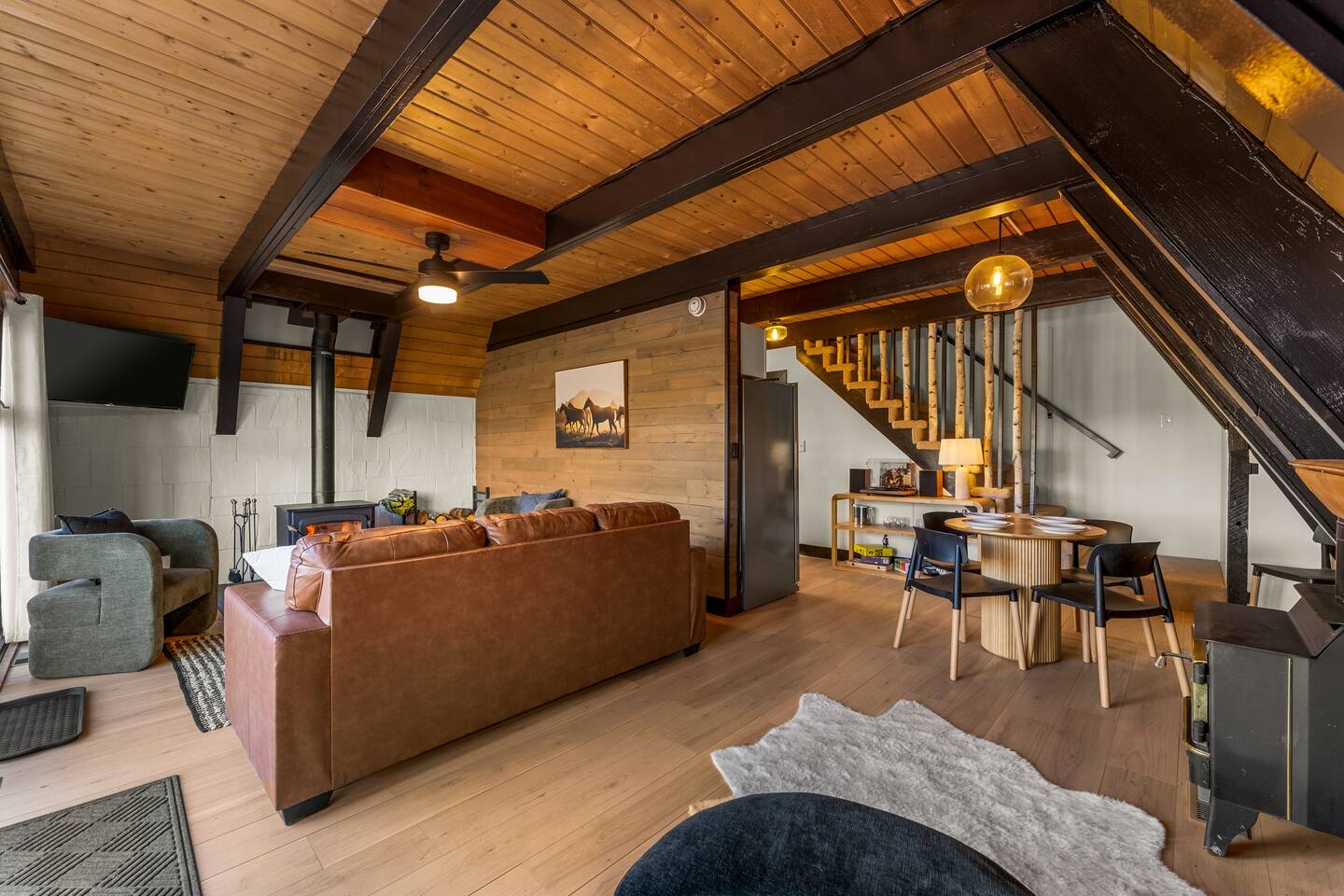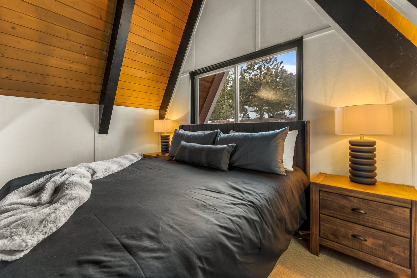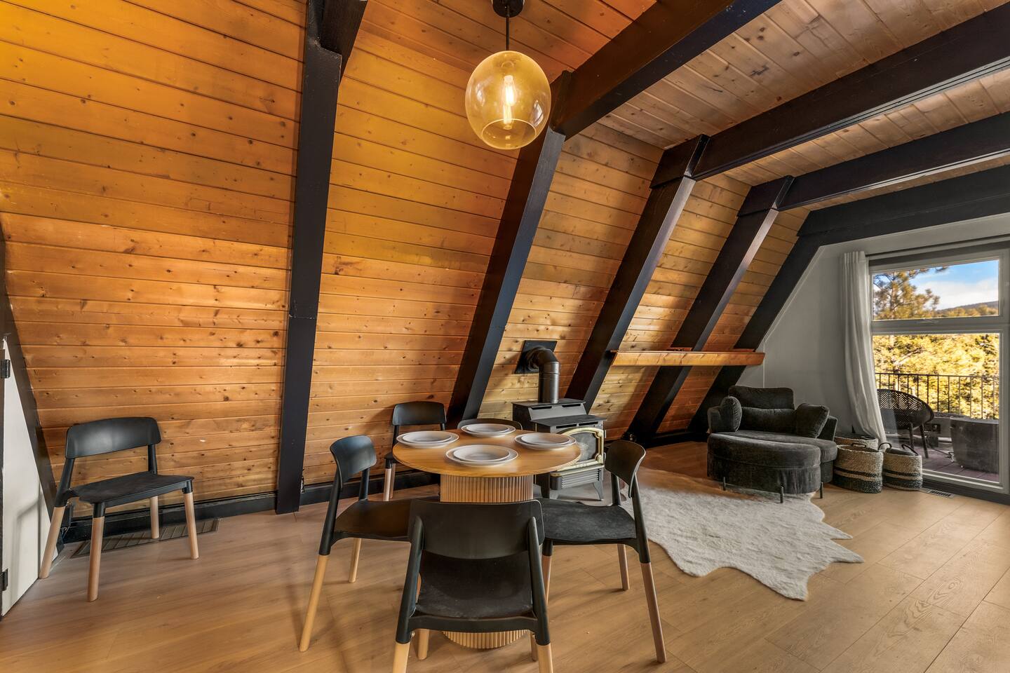 + Please make sure you have an All-Wheel-Drive vehicle to travel to the property. This is especially important in winter months. +This property is a 1970's A-frame with some steep staircases. Small children that are crawling or unsteady on their feet are not the best fit for this cabin. +This home offers seclusion and breath-taking views. That said their are natural hazards such as wildlife and rugged terrain. Pets and children should not be left unsupervised outside.