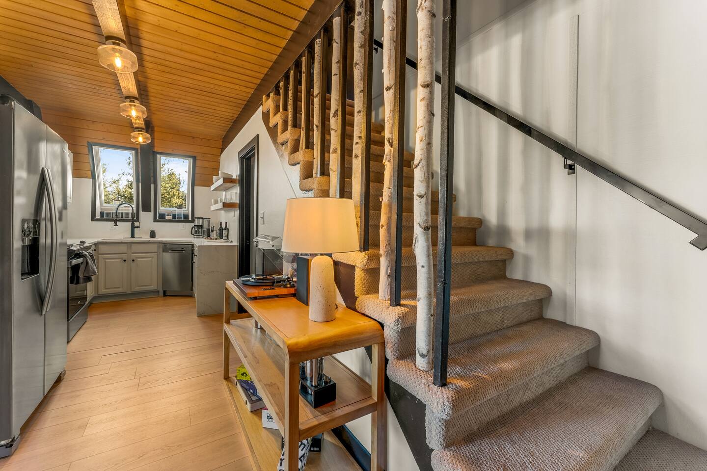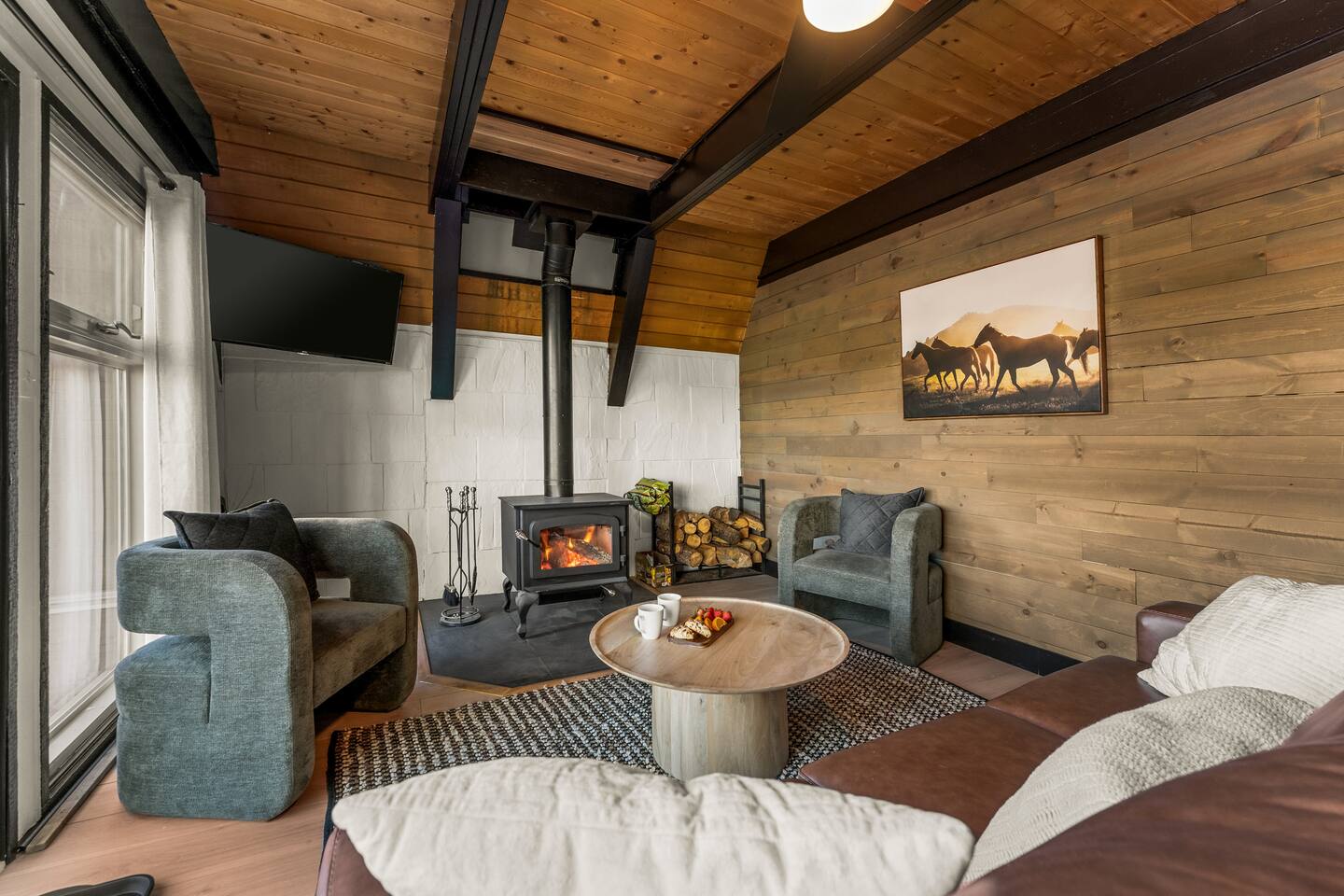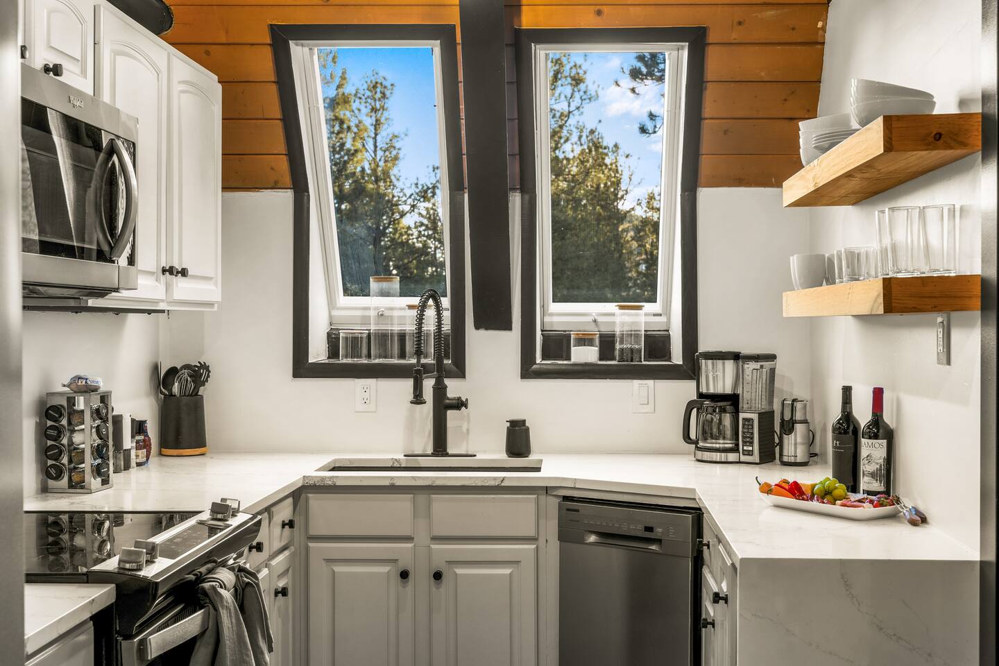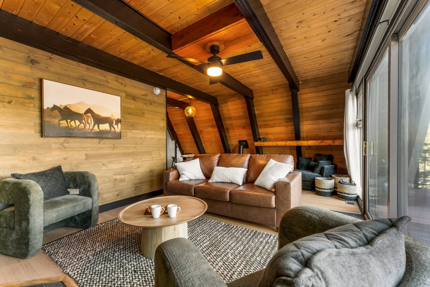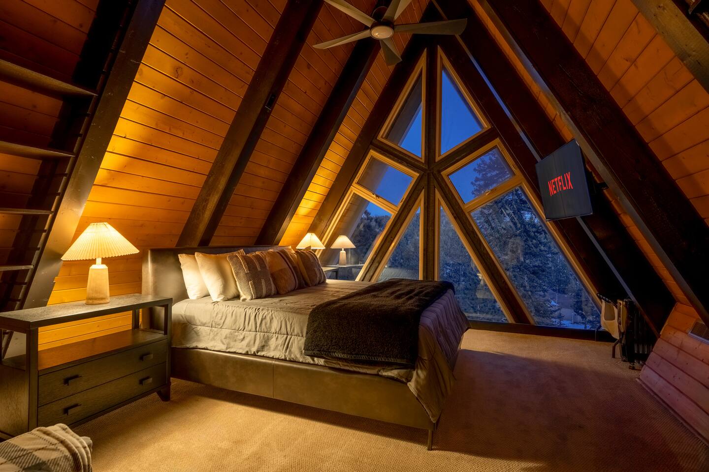 + Please make sure you have an All-Wheel-Drive vehicle to travel to the property. This is especially important in winter months. +This property is a 1970's A-frame with some steep staircases. Small children that are crawling or unsteady on their feet are not the best fit for this cabin. +This home offers seclusion and breath-taking views. That said their are natural hazards such as wildlife and rugged terrain. Pets and children should not be left unsupervised outside.