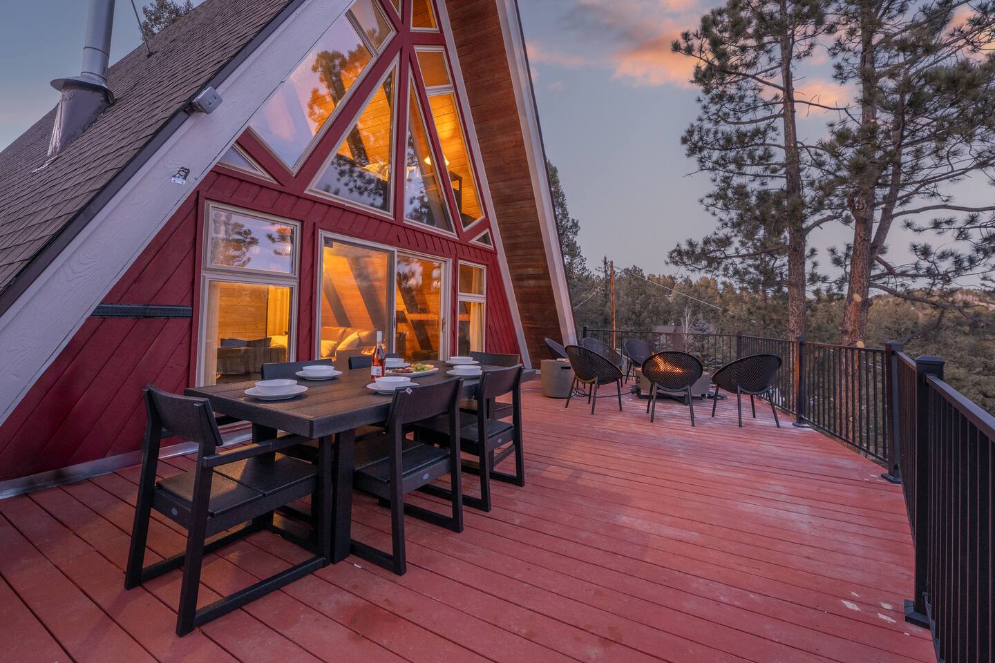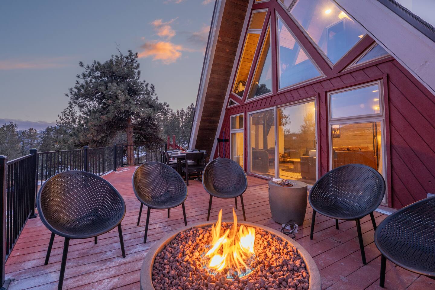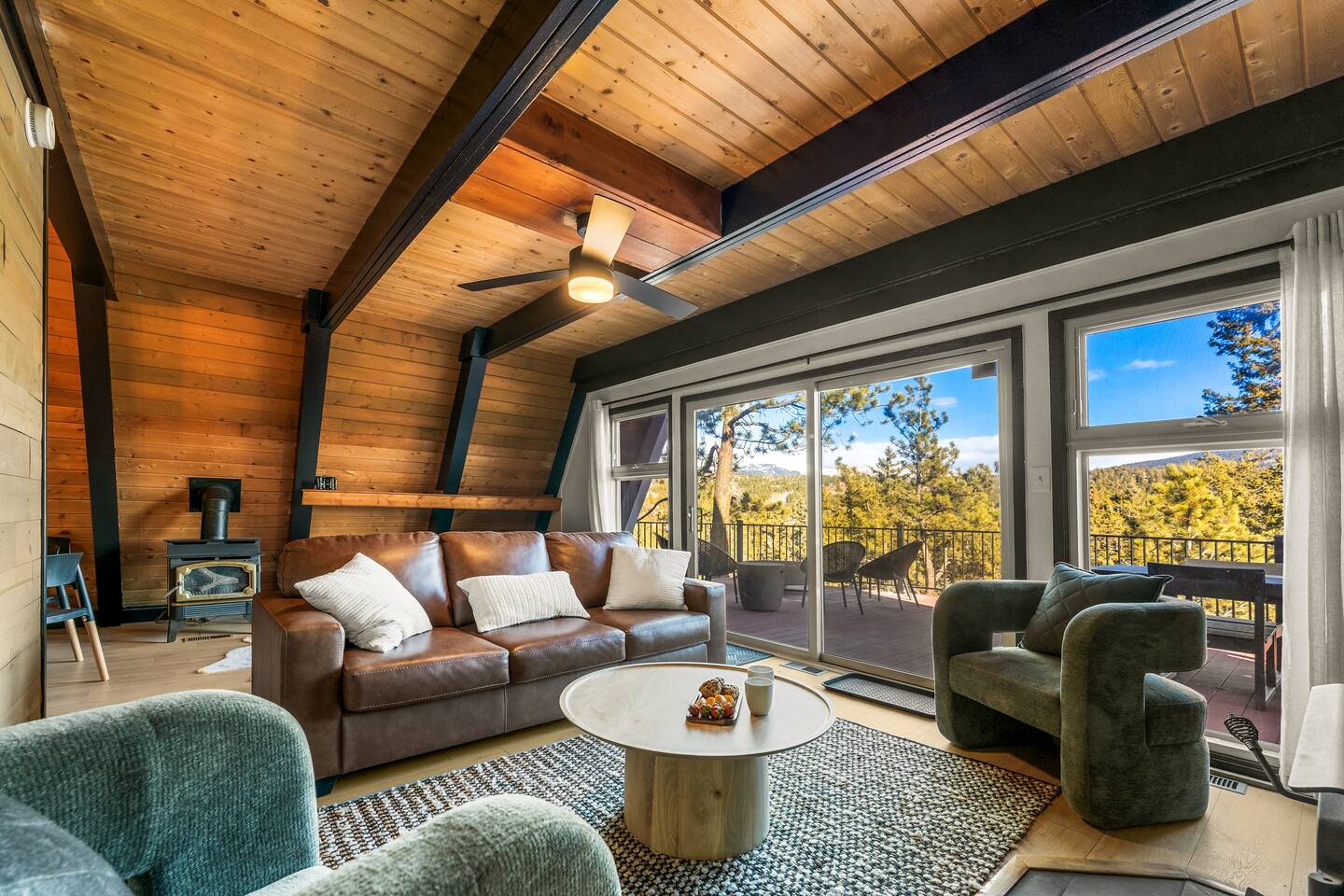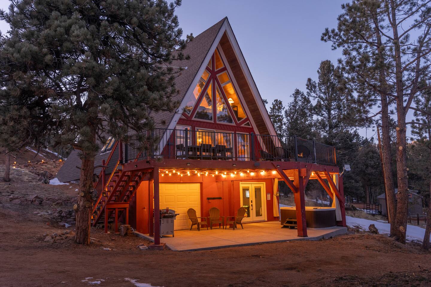Unplug, unwind, and soak in the breathtaking mountain views at Skyfall Cabin—your ultimate getaway just outside of Cripple Creek. Perched in the serene wilderness, this modern mountain retreat blends rustic charm with modern upgrades to give you the perfect balance of comfort and adventure. KEY FEATURES: ☀ Sleeps 7 | 1650 sq ft A-frame Cabin 💧 Private Hot Tub with jaw-dropping mountain views 🎮 Epic Game Room with ping pong, Nerf gear, and hundreds of stand-up and hand-held video games 🔥 Fire Pit for stargazing, s’mores, and late-night stories 🪵 Wood-Burning Stove for cozy, high-country vibes 📡 Fast WiFi + Smart TVs with streaming access 🛌 3 Bedrooms + 2 Bathrooms + Deck + Patio 🐾 Pet-Friendly (up to 2 well-behaved pets allowed) 👶 Kid-Friendly touches – bunk beds, games, pack-n-play, high chair 🍳 Fully stocked kitchen with coffee maker, cooking utensils and tools, and gorgeous views 🧼 Towels, shampoo, conditioner, body wash + 2 soft robes 🚙 Just 15 minutes to Cripple Creek’s gold mines, shops, trails, and casinos We provide thoughtful details, fast responses, and a full digital guidebook to help you get the most out of your mountain getaway. What guests are saying: "Our family had the best time here! The place was super cozy and really clean. The host went above and beyond for us—exactly the kind of host Airbnb should be known for." "We absolutely loved staying at the cabin. The kids were blown away by the arcade games and the nerf guns and loved the bunk beds." "The A-Frame cabin was beyond our expectations. The space was so much larger than we anticipated from the photos." ★The Cabin★ 🛏 BEDROOMS Primary Bedroom (Upstairs) – Start your morning with crisp mountain air and warm sun pouring through the windows. This cozy king bedroom includes a Smart TV, oversized reading chair, and provides easy access to the upstairs bathroom. Secondary Bedroom (Upstairs) – Peaceful and private with a plush king bed, side tables, and vaulted ceilings Bunk Room – Perfect for kids or the young at heart. Queen-over-Queen bunk beds with a small space for playing games, reading, or hanging out. All rooms include fresh linens, pillows, and cozy bedding. 🛁 BATHROOMS 2 full bathrooms (one on each level) with tub/shower combos. Stocked with shampoo, conditioner, body wash, hand soap, and hair dryer Plush towels and 2 spa-quality robes provided 🍳 KITCHEN & DINING The kitchen is equipped with all the essentials—dishes, pots, pans, utensils, crockpot and a drip coffee maker. Indoor dining area seats 4-5 Kitchen perfect for meal prep or casual snacking 🛋 LOUNGE & LIVING SPACES The cozy main room features a wood-burning stove, comfy sofa seating, and a Smart TV for movie nights. Vaulted ceilings and full-height windows in the primary bedroom create a stunning indoor-outdoor feel. 🎮 GAME ROOM Located in the converted walkout basement, this space is a hit for all ages. Ping pong table Hundreds of video games, both arcade and hand-held Nerf battle gear Board games & cozy seating 🌄 OUTDOOR SPACE Private hot tub with panoramic views of the surrounding peaks Fire pit with chairs for stories, stargazing, and s’mores Deck with outdoor dining table for morning coffee or sunset drinks Gas blackstone grill available for guest use Frequent wildlife sightings—deer, birds, and the big horn sheep and bears—oh my! Guest Access Guests have access to the entire home and surrounding unfenced property. Parking for 2–3 vehicles. Smart lock for self-check-in. Other Things to Note AWD or 4WD strongly recommended year-round, required in winter The cabin is located in the mountains with rugged terrain and wildlife. Please supervise children and pets outdoors The steep staircases and open railings may not be suitable for crawling or unsteady toddlers, or adults with mobility limitations ★☆ Book Your Stay at Skyfall ☆★ Whether you're sipping wine in the hot tub, reliving your childhood with vintage arcade games, or exploring gold mines and ghost towns nearby, Skyfall offers the perfect blend of comfort, seclusion, and unforgettable experience. Book today and let us host your Colorado mountain escape!