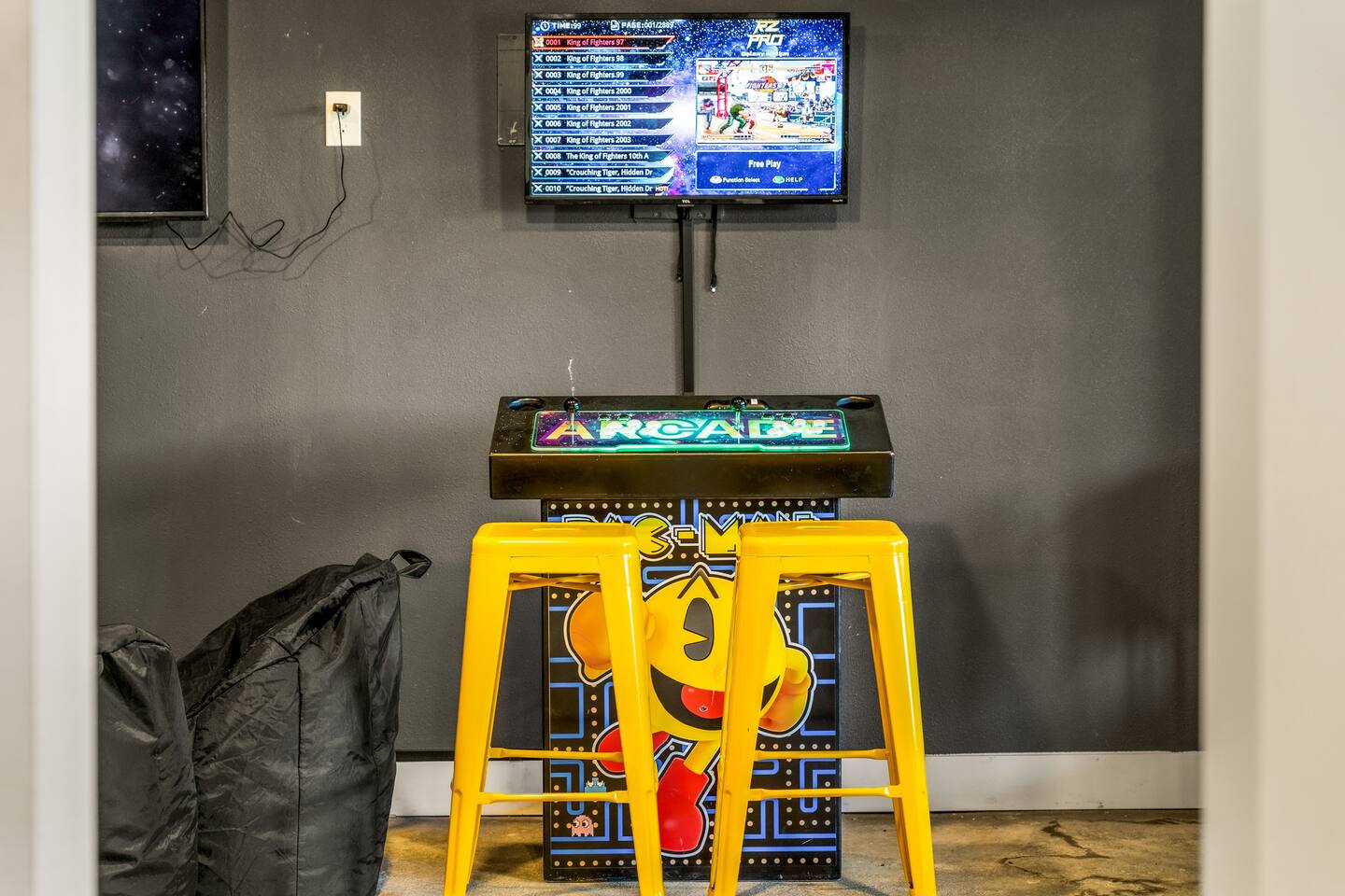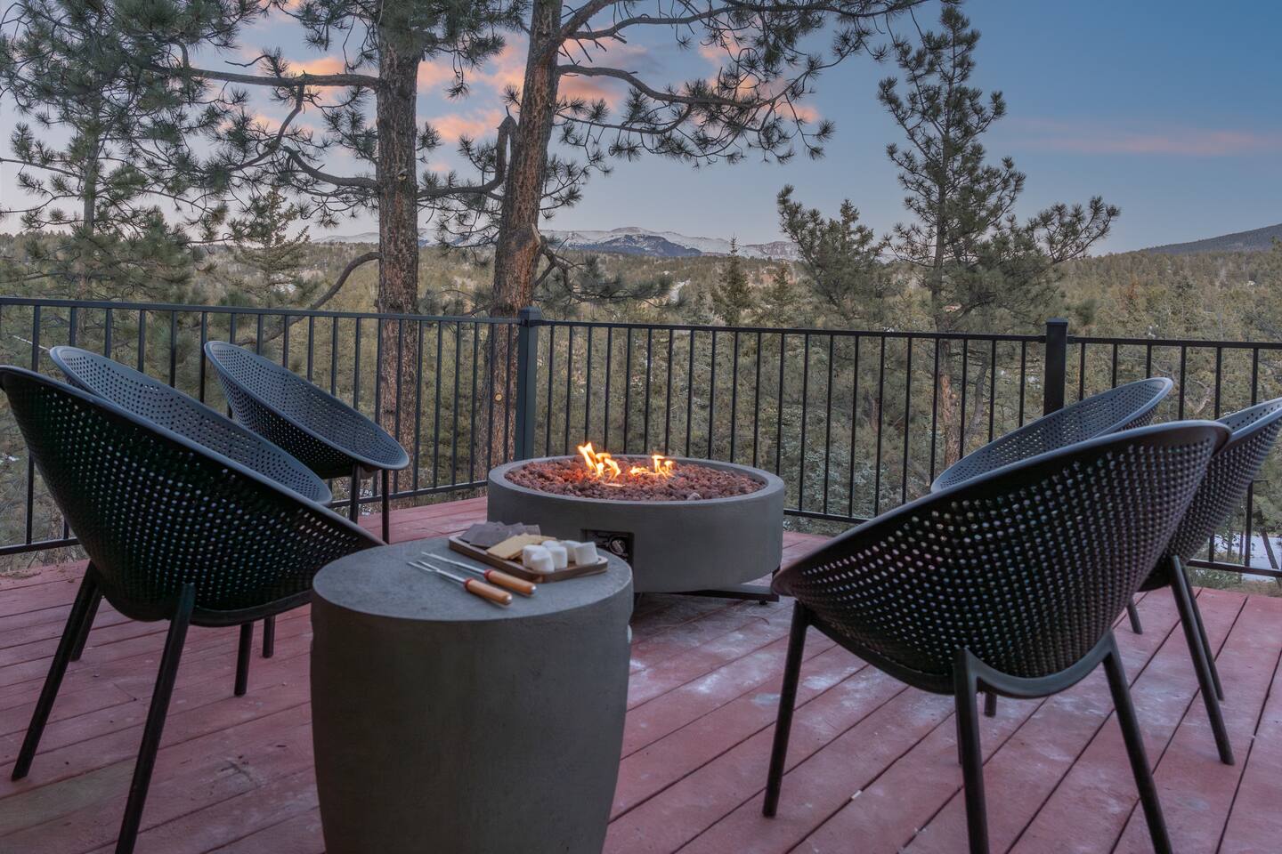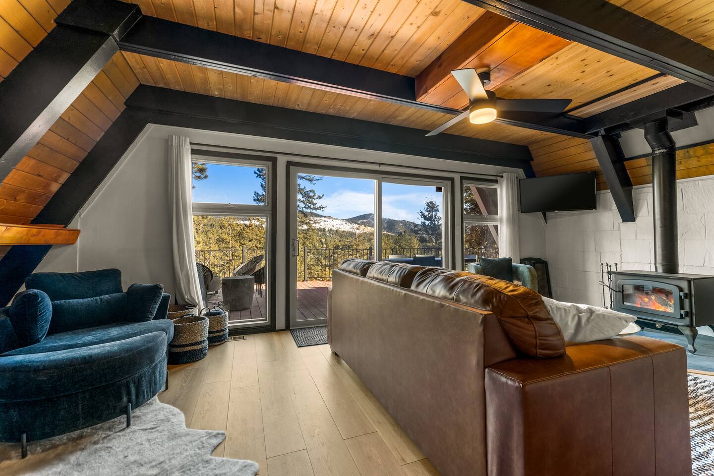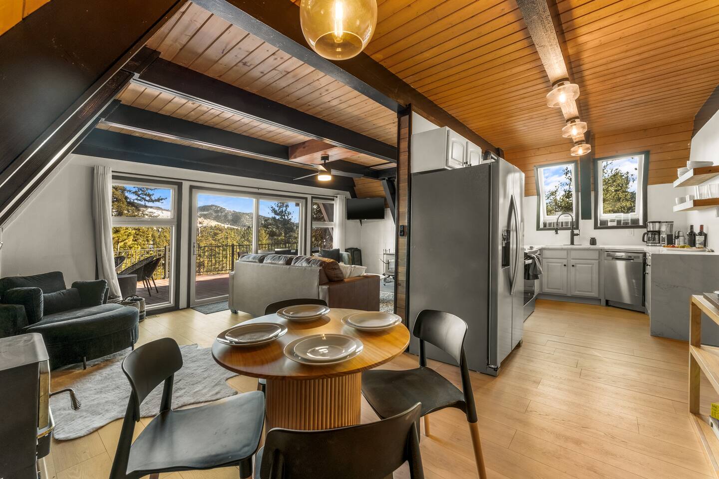 Unplug, unwind, and soak in the breathtaking mountain views at Skyfall Cabin—your ultimate getaway just outside of Cripple Creek. Perched in the serene wilderness, this modern mountain retreat blends rustic charm with modern upgrades to give you the perfect balance of comfort and adventure. KEY FEATURES: ☀ Sleeps 7 | 1650 sq ft A-frame Cabin 💧 Private Hot Tub with jaw-dropping mountain views 🎮 Epic Game Room with ping pong, Nerf gear, and hundreds of stand-up and hand-held video games 🔥 Fire Pit for stargazing, s’mores, and late-night stories 🪵 Wood-Burning Stove for cozy, high-country vibes 📡 Fast WiFi + Smart TVs with streaming access 🛌 3 Bedrooms + 2 Bathrooms + Deck + Patio 🐾 Pet-Friendly (up to 2 well-behaved pets allowed) 👶 Kid-Friendly touches – bunk beds, games, pack-n-play, high chair 🍳 Fully stocked kitchen with coffee maker, cooking utensils and tools, and gorgeous views 🧼 Towels, shampoo, conditioner, body wash + 2 soft robes 🚙 Just 15 minutes to Cripple Creek’s gold mines, shops, trails, and casinos We provide thoughtful details, fast responses, and a full digital guidebook to help you get the most out of your mountain getaway. What guests are saying: "Our family had the best time here! The place was super cozy and really clean. The host went above and beyond for us—exactly the kind of host Airbnb should be known for." "We absolutely loved staying at the cabin. The kids were blown away by the arcade games and the nerf guns and loved the bunk beds." "The A-Frame cabin was beyond our expectations. The space was so much larger than we anticipated from the photos." ★The Cabin★ 🛏 BEDROOMS Primary Bedroom (Upstairs) – Start your morning with crisp mountain air and warm sun pouring through the windows. This cozy king bedroom includes a Smart TV, oversized reading chair, and provides easy access to the upstairs bathroom. Secondary Bedroom (Upstairs) – Peaceful and private with a plush king bed, side tables, and vaulted ceilings Bunk Room – Perfect for kids or the young at heart. Queen-over-Queen bunk beds with a small space for playing games, reading, or hanging out. All rooms include fresh linens, pillows, and cozy bedding. 🛁 BATHROOMS 2 full bathrooms (one on each level) with tub/shower combos. Stocked with shampoo, conditioner, body wash, hand soap, and hair dryer Plush towels and 2 spa-quality robes provided 🍳 KITCHEN & DINING The kitchen is equipped with all the essentials—dishes, pots, pans, utensils, crockpot and a drip coffee maker. Indoor dining area seats 4-5 Kitchen perfect for meal prep or casual snacking 🛋 LOUNGE & LIVING SPACES The cozy main room features a wood-burning stove, comfy sofa seating, and a Smart TV for movie nights. Vaulted ceilings and full-height windows in the primary bedroom create a stunning indoor-outdoor feel. 🎮 GAME ROOM Located in the converted walkout basement, this space is a hit for all ages. Ping pong table Hundreds of video games, both arcade and hand-held Nerf battle gear Board games & cozy seating 🌄 OUTDOOR SPACE Private hot tub with panoramic views of the surrounding peaks Fire pit with chairs for stories, stargazing, and s’mores Deck with outdoor dining table for morning coffee or sunset drinks Gas blackstone grill available for guest use Frequent wildlife sightings—deer, birds, and the big horn sheep and bears—oh my! Guest Access Guests have access to the entire home and surrounding unfenced property. Parking for 2–3 vehicles. Smart lock for self-check-in. Other Things to Note AWD or 4WD strongly recommended year-round, required in winter The cabin is located in the mountains with rugged terrain and wildlife. Please supervise children and pets outdoors The steep staircases and open railings may not be suitable for crawling or unsteady toddlers, or adults with mobility limitations ★☆ Book Your Stay at Skyfall ☆★ Whether you're sipping wine in the hot tub, reliving your childhood with vintage arcade games, or exploring gold mines and ghost towns nearby, Skyfall offers the perfect blend of comfort, seclusion, and unforgettable experience. Book today and let us host your Colorado mountain escape!